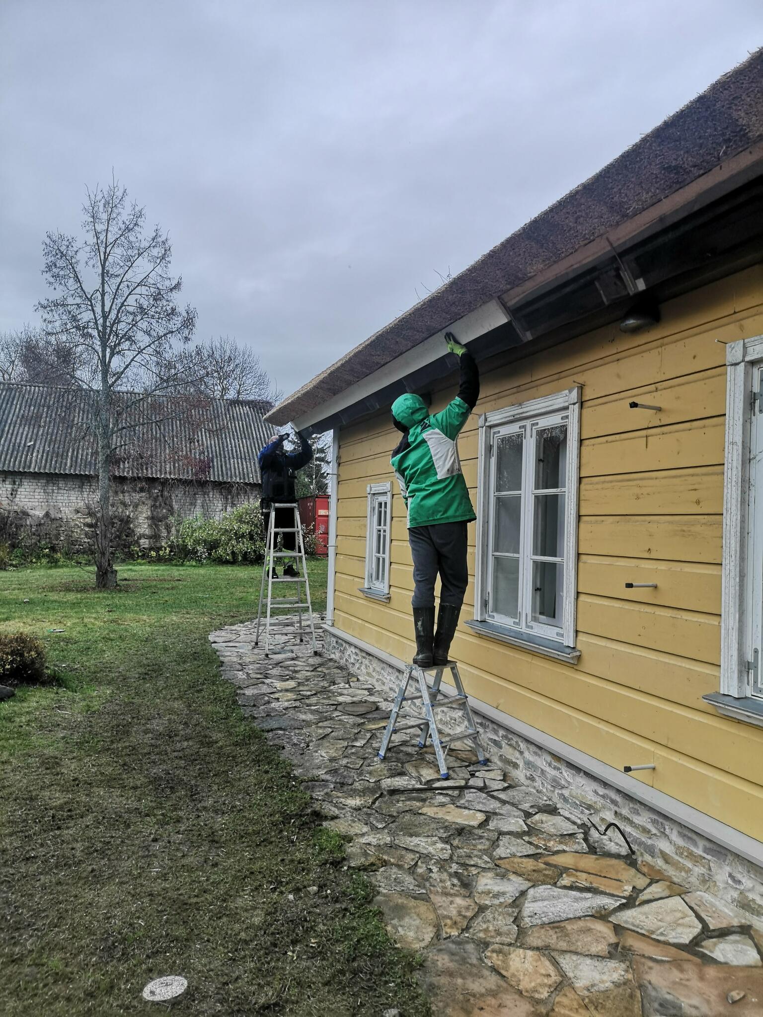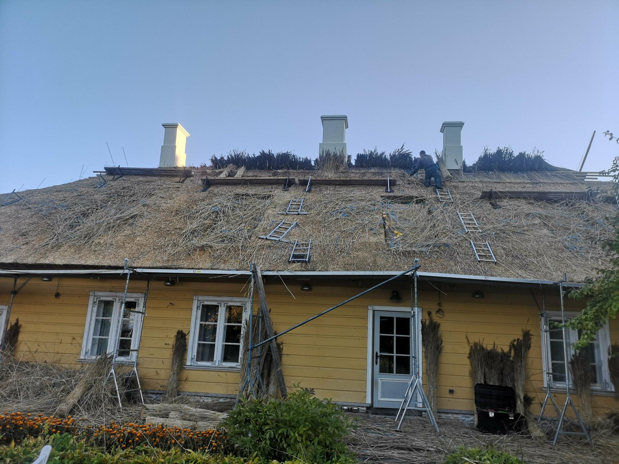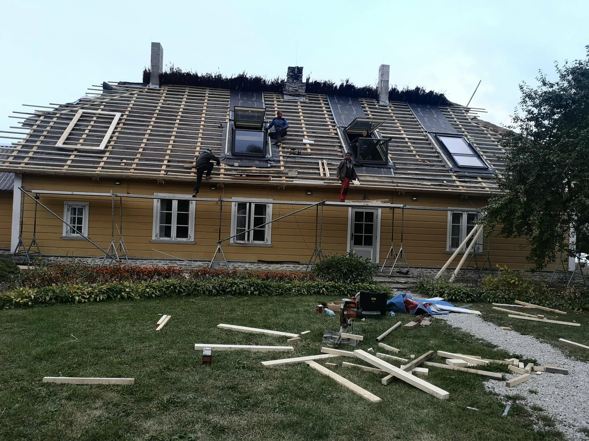 Muinsuskaitse kinnitas meie projekti. Väga äge. Ega need esimesed aknad meile kellelegi ei meeldinud ka, olgu neid kaks või neli, vahet pole, sest sellised ümarad muhukesed maja peal võivad sobida Hollandisse, aga mitte Läänemaale. Õnneks olid muinsuskaitsealusel Puulaiu kõrtsil Hiiumaal juba tasapinnalised katuseaknad rookatusel kasutusel, sealt me selle hea mõtte korjasime roomeister Siimu targal juhtimisel. Pealegi poleks olnud need ümmarguste uukidaga aknad ehituslikult vettpidamise mõttes võimalikud liiga vähese katusekalde tõttu. Nii et sellel suvel saime rookatuse ja suured aknad, mis on samm edasi. Ilmselt ka kõige viimasel hetkel sai see astutud, sest nii roo kui ka aknad suutsime osta vanade hindadega. Midagi oli sellest pikast hoovõtust kasu ka.